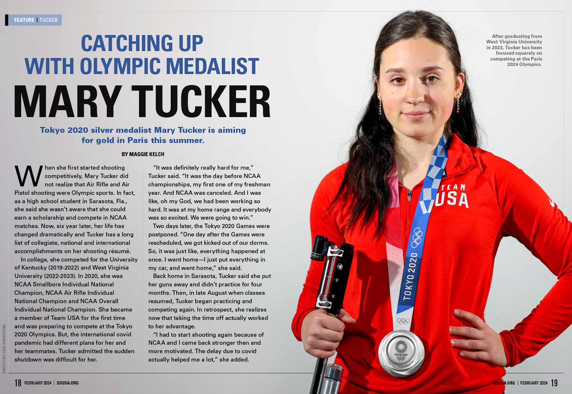 Our cover feature highlights Tokyo Olympic silver medalist Mary Tucker, who in January became one of the first USA Shooting athletes to secure a spot on the Paris 2024 Olympic shooting team. Author Maggie Kelch had the opportunity to chat with Tucker about her competition experiences since the Tokyo 2020 Olympic Games, including podium finishes at ISSF matches and the Pan Am Games, as well as her successful collegiate rifle career with the Kentucky Wildcats and West Virginia Mountaineers. Read Kelch’s interview with Tucker to learn more about this talented air rifle and smallbore shooter who is deep in preparation to earn Olympic medals once again in Paris this summer.