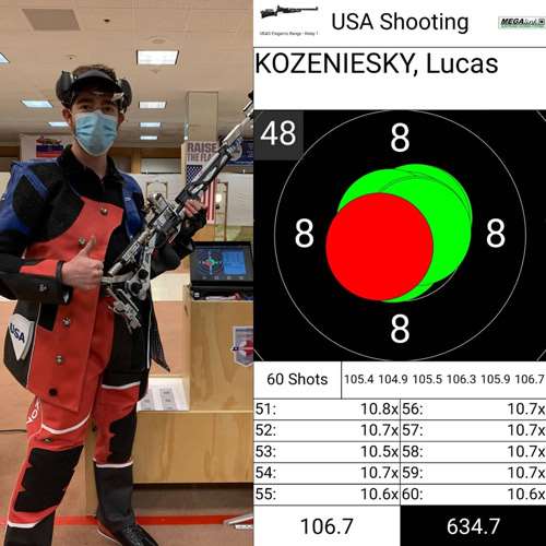 Two-time Olympian Lucas Kozeniesky broke his own 60-shot Air Rifle national record at a USA Shooting-sanctioned preliminary tryout on Apr. 18 at the Hotel Elegante Range in Colorado Springs, Colo. His score of 634.7 was over a point higher than the previous record of 633.6.