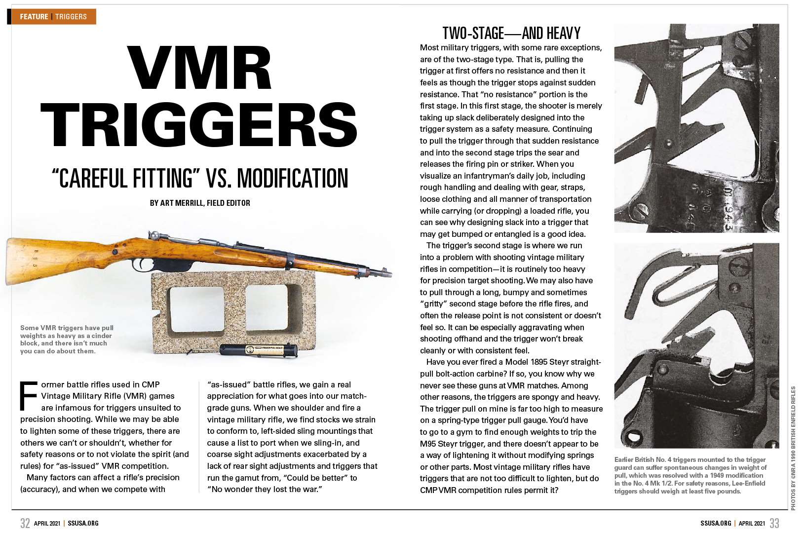 Competitive shooters will often gain new appreciation for everything that goes into modern, match-grade guns after shooting “as-issued” rifles in Vintage Military Rifle competition. For those interested in living out history with battle rifles at a match, the thrill of participating in VMR competition can’t be beat, but the two-stage military triggers they have aren’t exactly buttery smooth. This month, Field Editor Art Merrill shares how to improve your VMR competition gun’s trigger without violating the rulebook. You can read Merrill’s guide here.