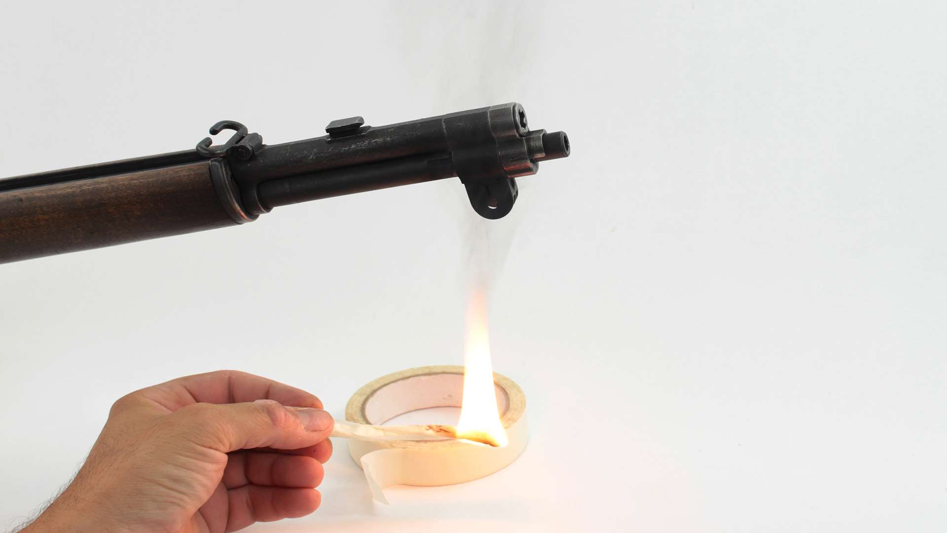 After tightening the front sight, take a cotton swab and clean out any dirt or dust that may have collected inside of the rear aperture. A clean peep sight is critical to accuracy; however, the absolute opposite is true for the front sight post. The darker and duller the front sight post is, the easier it is to pick up when building a sight picture. Try lighting a piece of masking tape on fire and using the smoke to coat the entire surface of the post. As the rubber-based adhesive burns, it leaves a jet-black film on any metallic parts that are over it. This also helps eliminate any reflection from the mid-day sun.