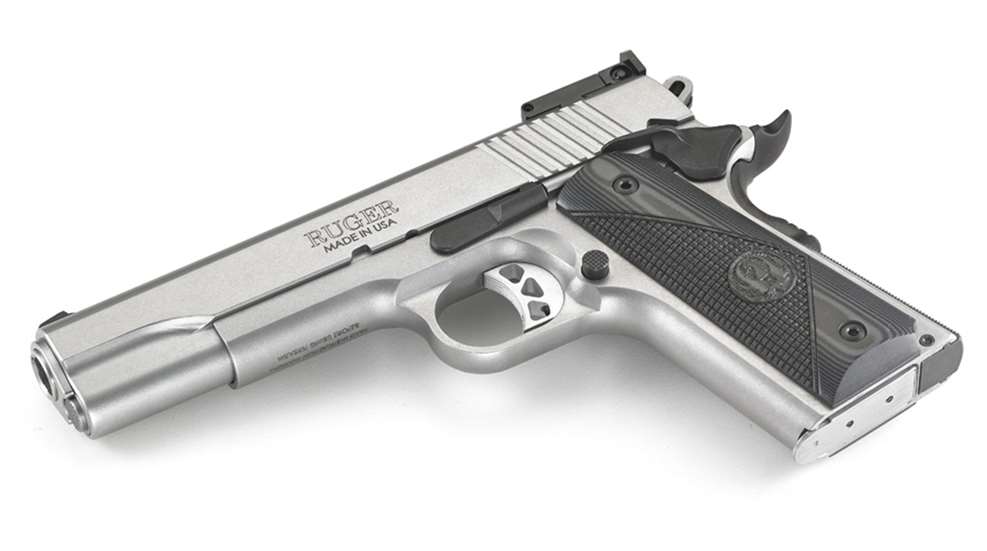 Ruger has introduced a new full-sized Target Model of the popular SR1911—in satin-finished stainless steel. The Target Model is competitive shooting friendly out of the box; with a Bomar-style fully adjustable rear sight, an extended, ambidextrous manual safety, and blackened controls with G-10 textured grips.