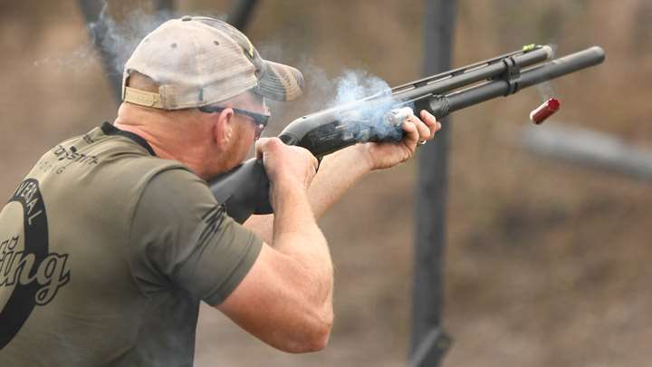 If you didn’t meet your end on either of the long-range stages or a run-in with the local wildlife, you got to take on the house stage. As I walked up to the stage, there were a few comments about me making it through this stage; this is the bay where I DQed from MG Nationals by having some trouble getting my shotgun to stay in a dump bin. I made it through this time. This is another perfect example of building stages for competitors to choose many different options on how to shoot it and with what firearms. You could shoot this with all three guns, which would require you to do some back and forth in the house, or you could eliminate some of the back and forth if you mixed bird and slugs to shoot clays and slug some paper targets and then swap to rifle or pistol. Another way was use the shotgun for the whole 22 required rounds by slugging paper targets. This is what I did, since I had the magazine capacity in the open shotgun. It was a lot of shotgun, and the heat off the gun by the time I was done was blistering to the touch.