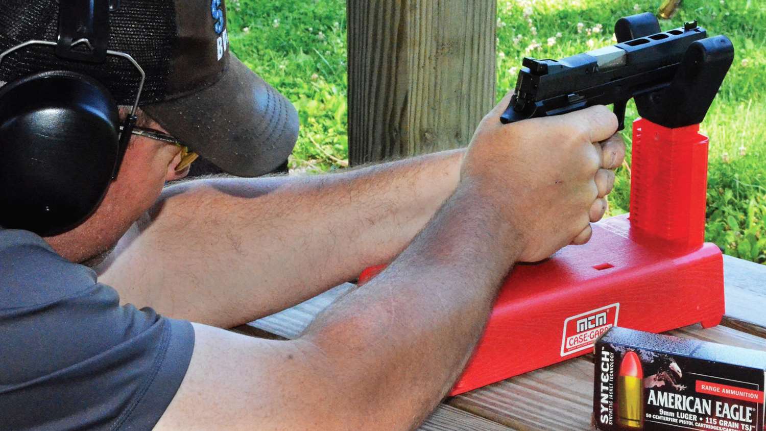 During this session there was one malfunction with the gun. We were shooting 115-, 124- and 147-grain American Eagle Ammunition from Federal Premium; some were the new Syntech coated bullets and some were copper-jacketed bullets. There was also some of my own handloaded cartridges in the mix. We had run all of the different loads over the chronograph. It is impossible to tell what load was the malfunction, but the round sounded light. The author is not very good at reloading 9mm rounds and one of his loads was the likely culprit of the malfunction, but that cannot be determined with any kind of scientific certainty.